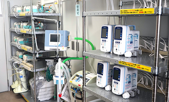 病棟などで使用される医療機器を集中的に管理(貸出・返却・点検)し、医療機器が効率的かつ安全に使用されるよう運用しています。また、機器操作を臨床現場で行う看護師等への教育も行っています。