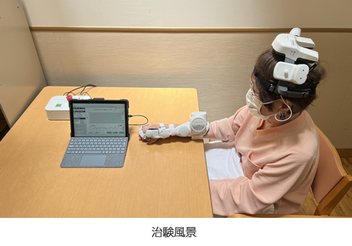 株式会社LIFESCAPESによって開発された、脳卒中後の上肢麻痺用のリハビリ機器です。関節運動が難しい重度の麻痺に対しても、脳波から脳活動を読み取り、関節運動を補助することができ、機能回復が難しいとされる重度上肢麻痺での改善を目的に使用します。